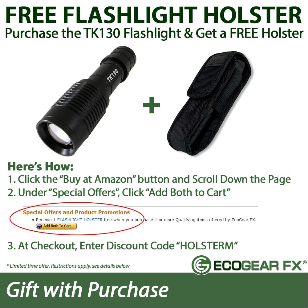 1 x TK130 Flashlight with Zoom 1 x Attached Lanyard 1 x AAA Battery Holder 1 x Sleeve for Lithium-ion Battery The perfect flashlight for home use, outdoor sports, fishing and security!   *Batteries not included